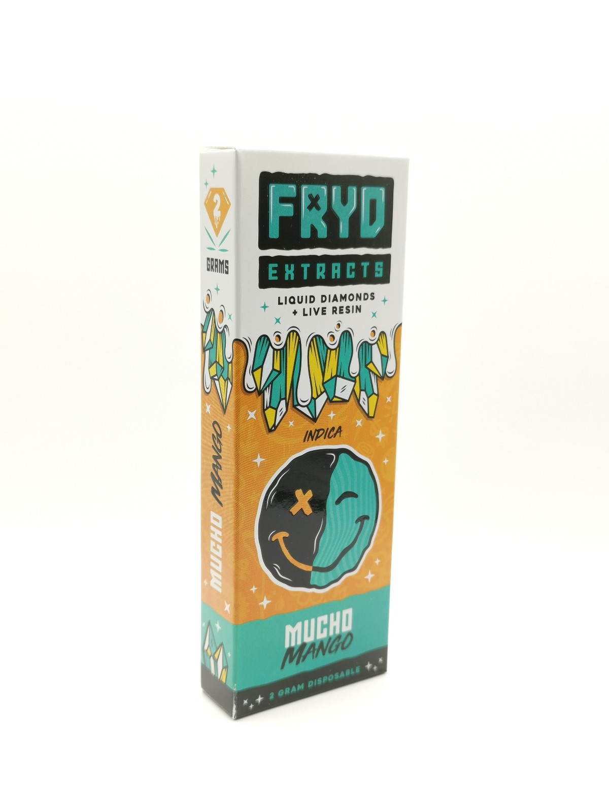 FRYD EXTRACTS: MUCHO MANGO (INDICA) – THC: 95% – LIQUID DIAMONDS + LIVE RESIN – 2 GRAMS – RECHARGEABLE DISPOSABLE